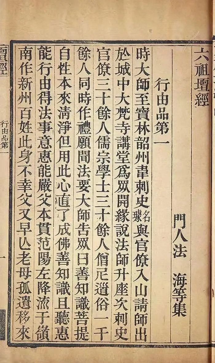 24岁闻《金刚经》开悟而辞母北上湖北黄梅谒五祖弘忍,以一首“菩提本无树,明镜亦非台。本来无一物,何处惹尘埃”的法偈得五祖认可,夜授《金刚经》,密传禅宗衣钵信物,为第六代祖。
