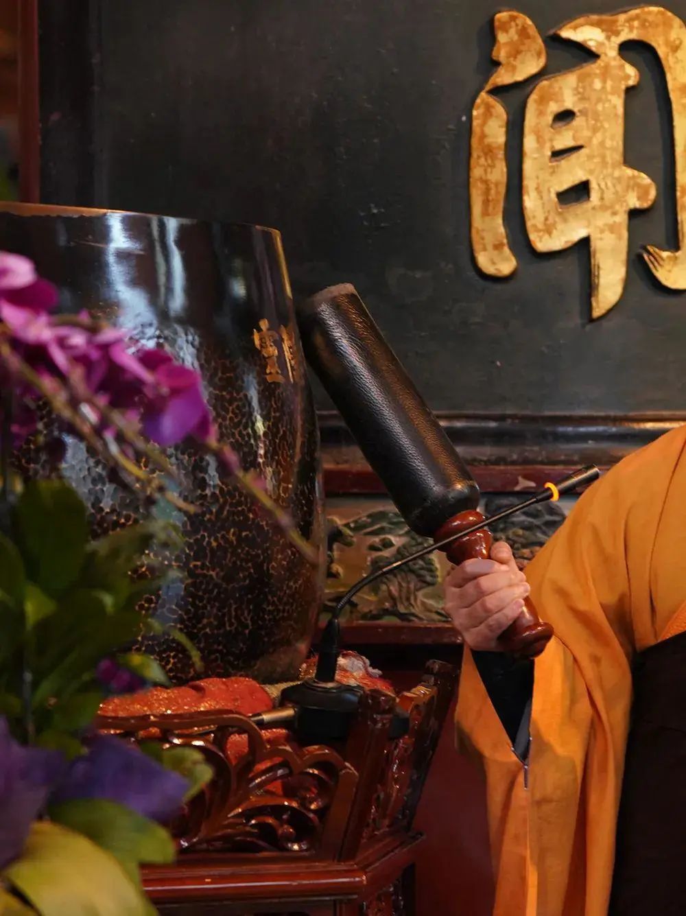 “大磬”的敲用,多半是在“起腔、收腔、合掌、放掌”、以及“佛号”等处。