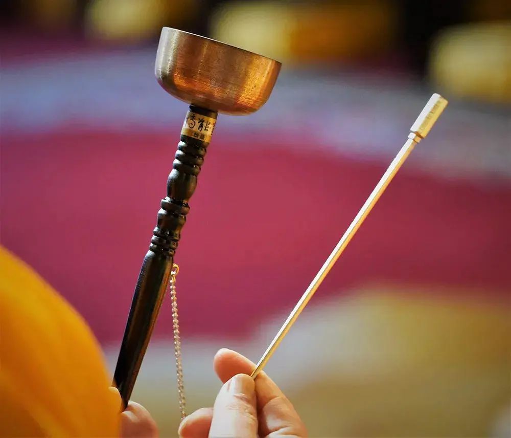 “引磬”的敲用,多半是在“问讯、转身、礼拜”、以及其他“动作”的场合—如晚课“蒙山施食”时,“行者“的动作等。