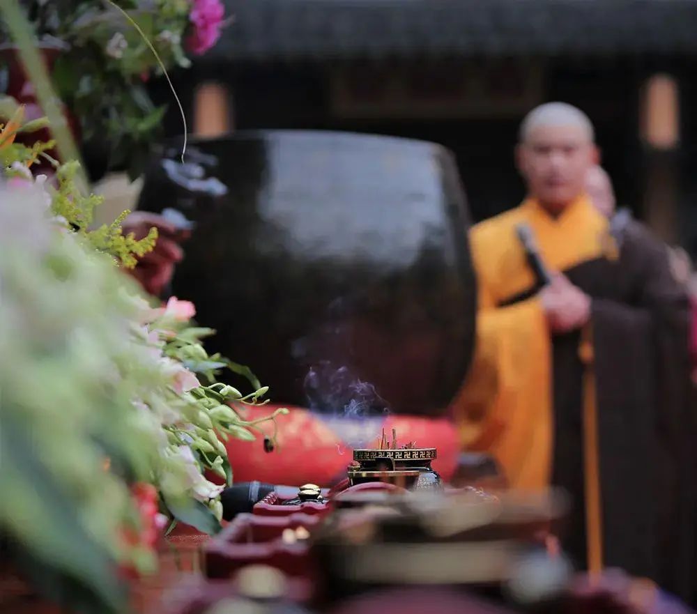 小寺院小道场人数少,”维那“、”悦众“两者往往都由一人兼任。于是”大磬“和”引磬“就得由一个人同时并用了。