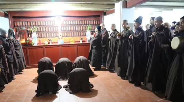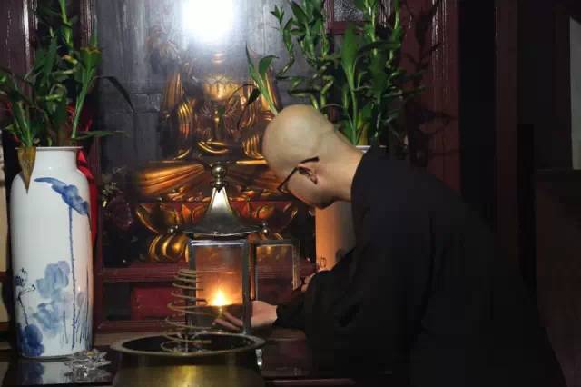 凌晨3:30“板头”师打四板,大众闻板声起床,穿海青、披袈裟。