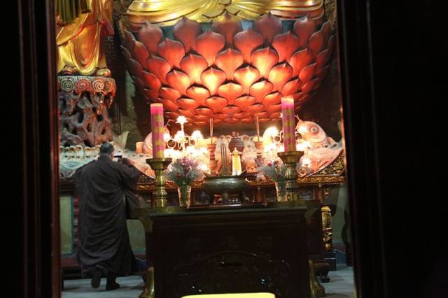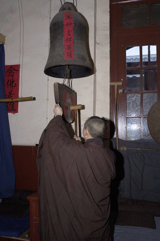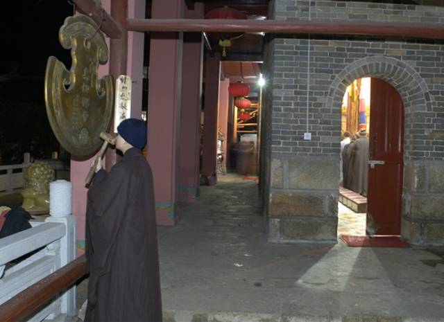 4:20 早殿开始。云板煞尾接引磬和鼓,大众闻引磬声拜佛,鼓声煞尾接木鱼,木鱼煞尾接大磬,维那师父压磬起腔,大众接腔齐诵。众僧雁行鱼贯,法器环环相扣,梵呗庄严肃穆,连南宋大儒程颐都感叹:“三代礼乐,尽在此矣!”