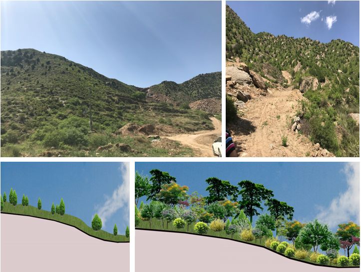 通过生态修复完善这一区域的生态环境,恢复周围植被,增加植物层次,形成完整的生态系统以及三季有花,
