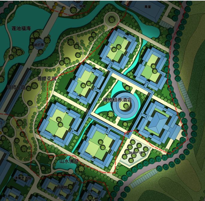 功能定位:以宗教朝圣、文旅休闲、养生度假为主导,以寺院、酒店、文化街区、佛文化花园、田园观光为主要功能,将本项目打造成为特色鲜明、配套完善的佛教文化旅游综合体。