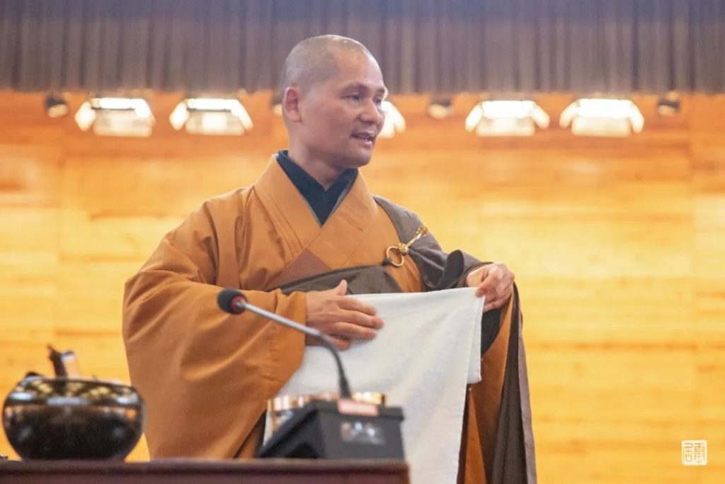 纯闻大和尚开示了“戒”的意义,同时希望众新戒在为期一个月的戒期内放下万缘,求得无上戒品。