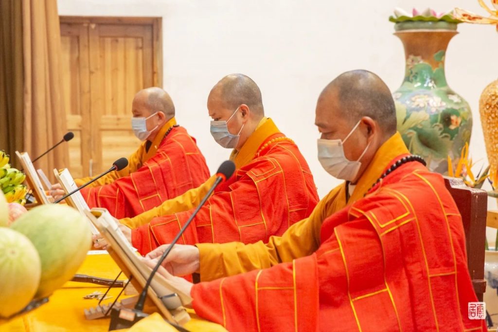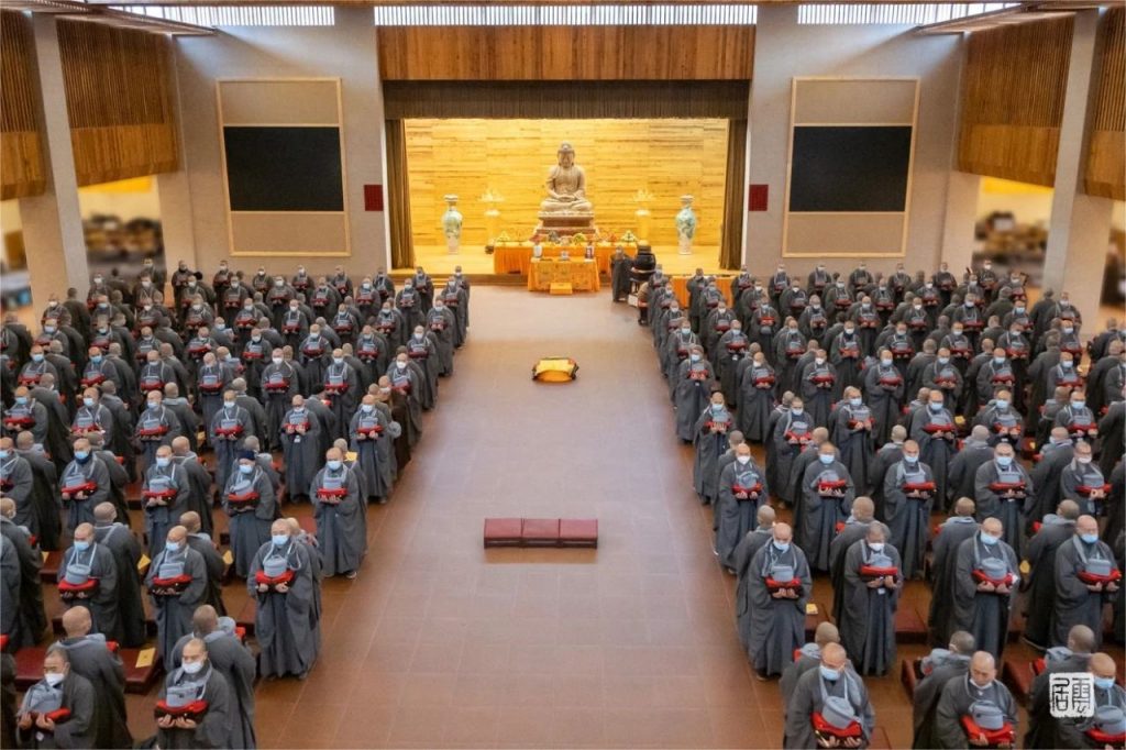 11月25日,上午八时十五分,新戒在诸引礼师的带领下于正觉苑整齐排班,迎请纯闻得戒大和尚、照荣羯磨阿阇黎、智梁教授阿阇黎。新戒至诚顶礼三拜,长跪合掌,请求开导。