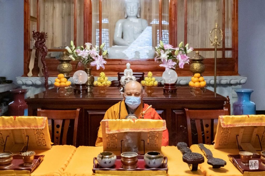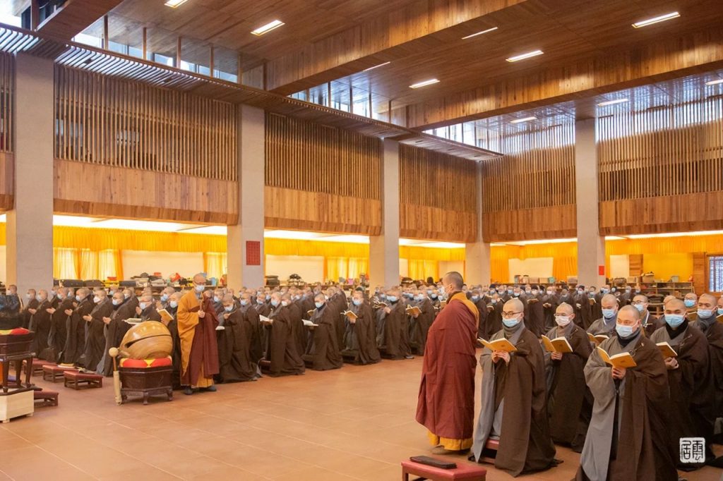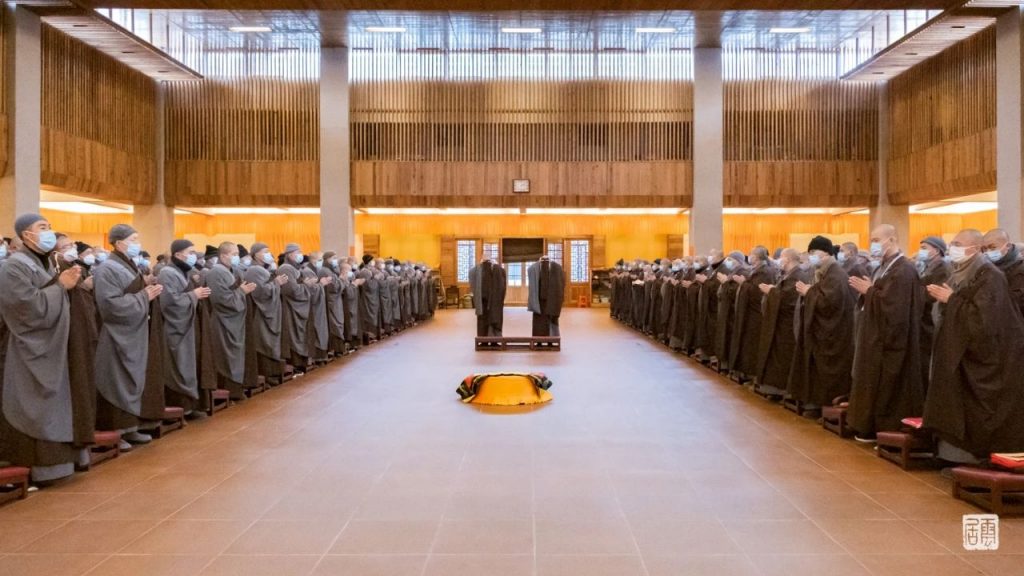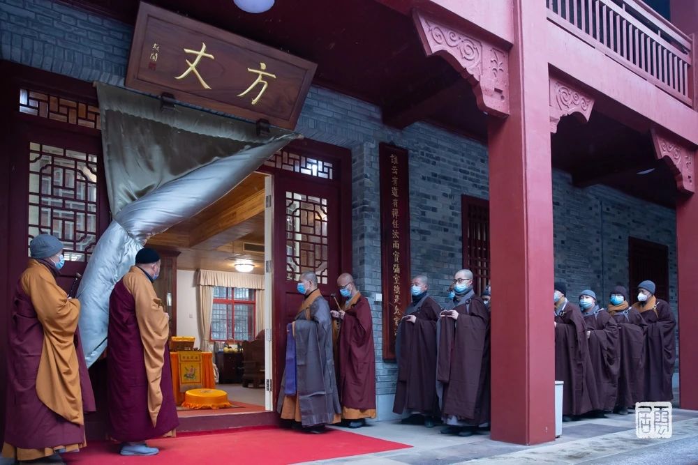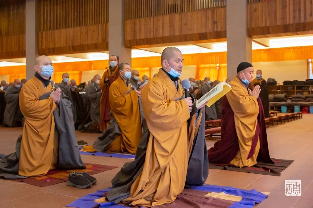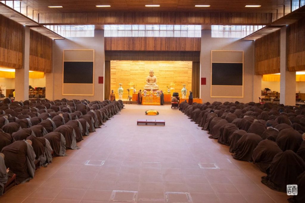 12月1日,上午八时,引礼师带领新戒于正觉苑整齐排班,恭请三师至正觉苑。新戒至诚顶礼,长跪合掌,请求开导。
