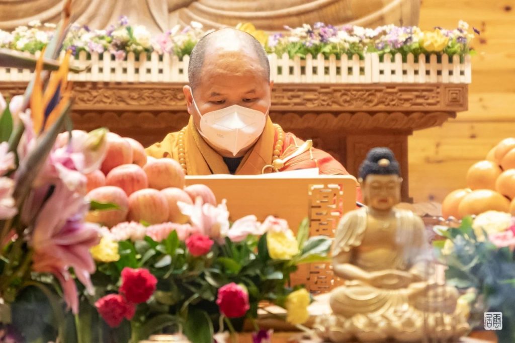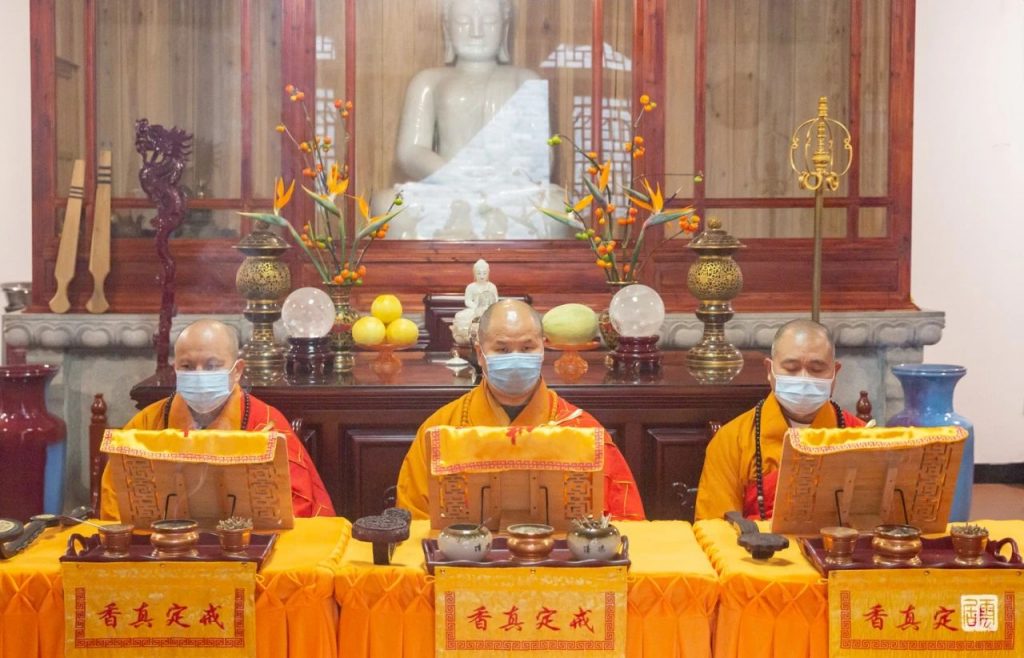 晚七时,众新戒比丘恭请纯闻得戒大和尚至正觉苑举行授幽冥戒仪式。