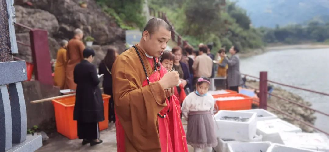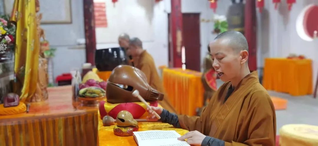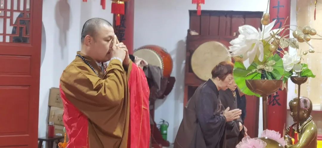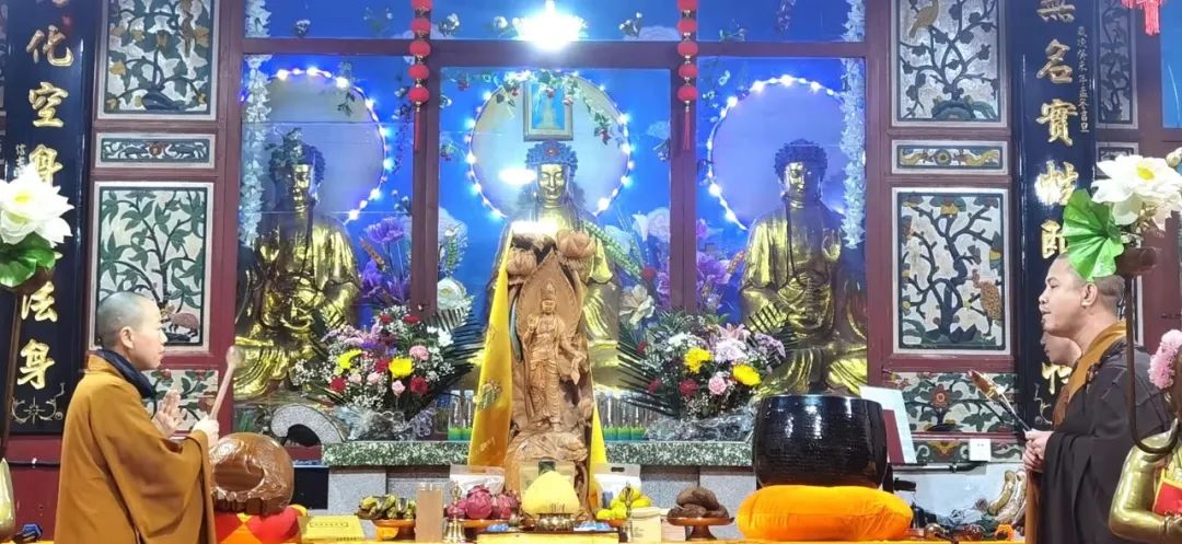 法师带领大众齐诵《观世音菩萨普门品》,祈请菩萨加持护佑,至心皈命求依怙,烦恼障碍悉消除。