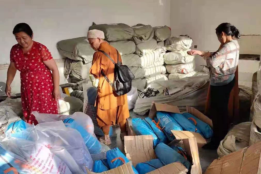 5月24日,灵山慈善基金会、慧海公益、云南省佛教协会,根据前方需求,紧急启动驰援计划,7600公斤大米,3800公斤面条,760箱方便面在大理集结装车,赴漾濞一线。 与此同时,僧伽医养项目团队,联系了漾濞佛教协会,邮寄了帐篷和棉被等亟需物资,由法师根据当地情况安排发送。