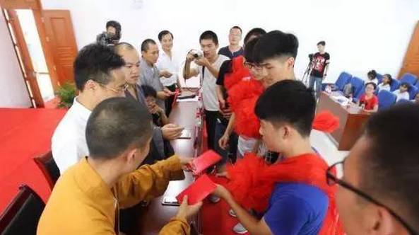 在欢送仪式上,少林寺、河南省慈善总会等社会各界爱心人士分别为数名准大学生发大红包,以此资助他们攻读大学。(图片来源:中新网 )