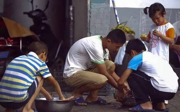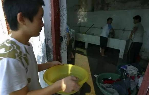 稍大些的孩子开始生活自理,洗洗涮涮的事情都要自己做。(图片来源:北京晚报)