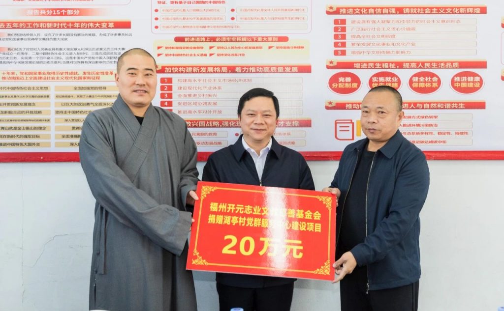 2月19日,省委统战部副部长、省民族宗教厅厅长兰明尚携福建农林大学乡村振兴团队、福州开元志业文教慈善基金会、厦门南普陀寺慈善会一行,赴仙游县钟山镇湖亭村实地调研,考察林下经济,开展“福籽同心爱中华·爱心义诊进湖亭”公益活动,捐赠湖亭村饮水安全工程、党群服务中心搬迁、九鲤湖路面改造项目资金,福州开元文教慈善基金会特向以上项目捐款20万元,并与镇村负责同志、致富带头人代表座谈,把脉湖亭村振兴发展思路。座谈中,兰明尚厅长强调,帮扶助推乡村振兴体现的是党和政府的关怀,彰显的是社会主义制度的优越性,要继续在社会帮扶、项目帮扶、人心帮扶上下足功夫。钟山镇、湖亭村要深入贯彻落实“深学争优、敢为争先、实干争效”行动,按照乡村振兴“产业兴旺、生态宜居、乡风文明、治理有效、生活富裕”的总要求,抓住九鲤湖文化底蕴深厚的优势,让老百姓有更多幸福感、获得感。